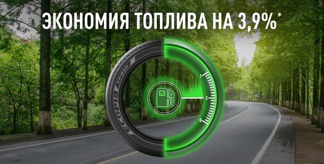Экономное вождение не только сохраняет топливо, но и бережно относится к окружающей среде, уменьшая выброс C02. Расход топлива меньше на 3,9%2 благодаря низкому уровню сопротивления качению и облегченной конструкции шины.